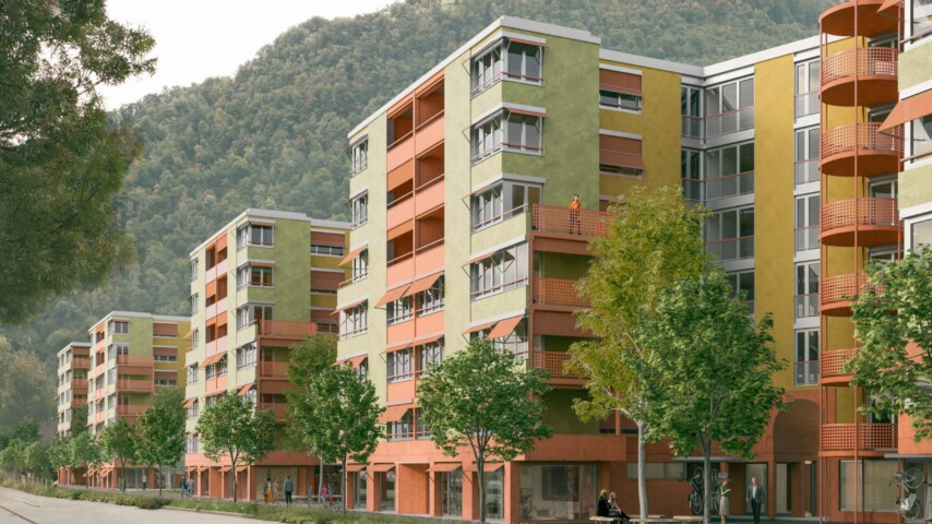 Vis-à-vis des Bahnhofs Laufenburg entsteht ein Wohnensemble, das aus den Widersprüchen seines Ortes Kraft schöpft. Zwei versetzte Baukörper, eine üppige Grünschicht und über 30 Wohnungen . Das Büro AWW Architekten AG hat mit der Urben Seyboth AG einen eingeladenen Studienauftrag gewonnen,