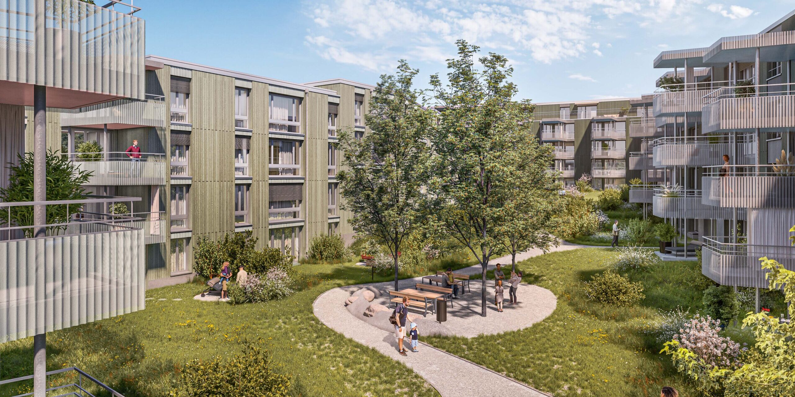 Die geplante Wohnsiedlung zeichnet sich durch ihre L-förmige Anordnung aus, die grosszügige Freiräume für Gemeinschaftsaktivitäten und individuelle Entfaltung lässt. Der vielfältige Wohnungsmix reicht von kompakten 1½-Zimmer-Wohnungen bis zu geräumigen 5½-Zimmer-Wohnungen, um ein breites Spektrum an Bewohnerinnen und Bewohnern anzusprechen – von Singles über Senioren bis hin zu Familien.