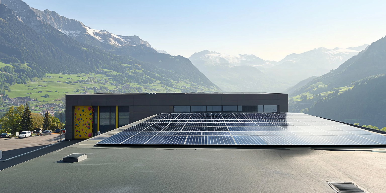 The Münchenstein-based electricity producer aventron AG opened its new solar power plant in Näfels on March 27, according to a press release. The system is located on the roof of the bouldering hall, which is part of the Lintharena building complex. While the Verein Kletteranlagen Linthgebiet (VKL) has made the roof of the bouldering hall available for the solar system, the system itself is fully owned by aventron.