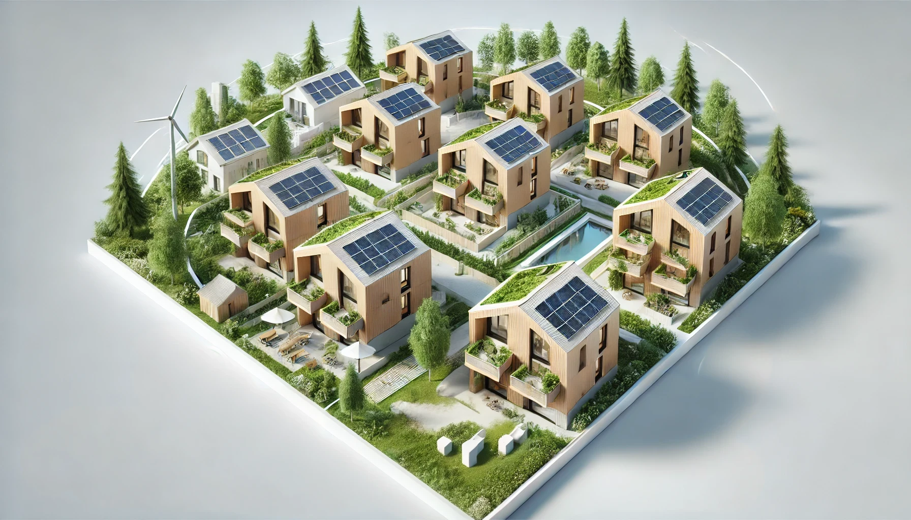 Selon les informations fournies, le site se distingue par l’utilisation de 6 600 mètres cubes de bois suisse renouvelable, ainsi que par sa très faible consommation d’énergie et une autosuffisance maximale en énergies renouvelables. Les émissions de gaz à effet de serre lors de la construction et de l’exploitation ont été minimisées. En outre, les bâtiments présentent une protection thermique supérieure à la moyenne ainsi qu’un renouvellement d’air contrôlé. L’aménagement de l’espace extérieur augmente la résilience climatique et la qualité du séjour, par exemple par des plantations et des ombrages appropriés. Un concept de mobilité respectueux de l’environnement fait également partie du concept global.