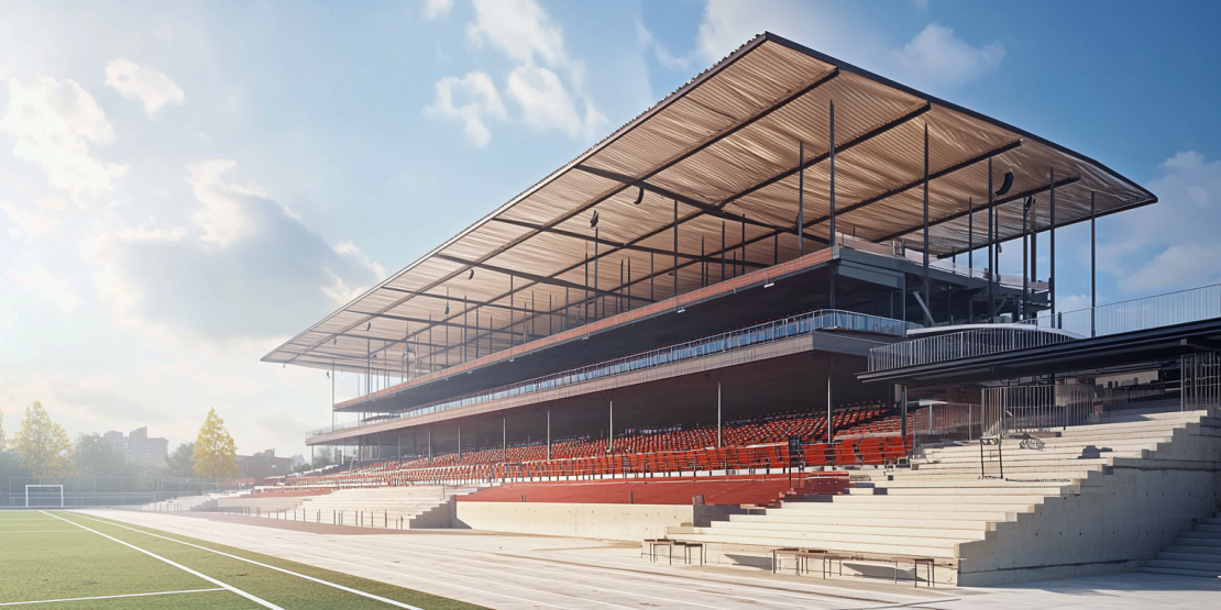 Construction durable de stades avec des éléments de système réutilisables