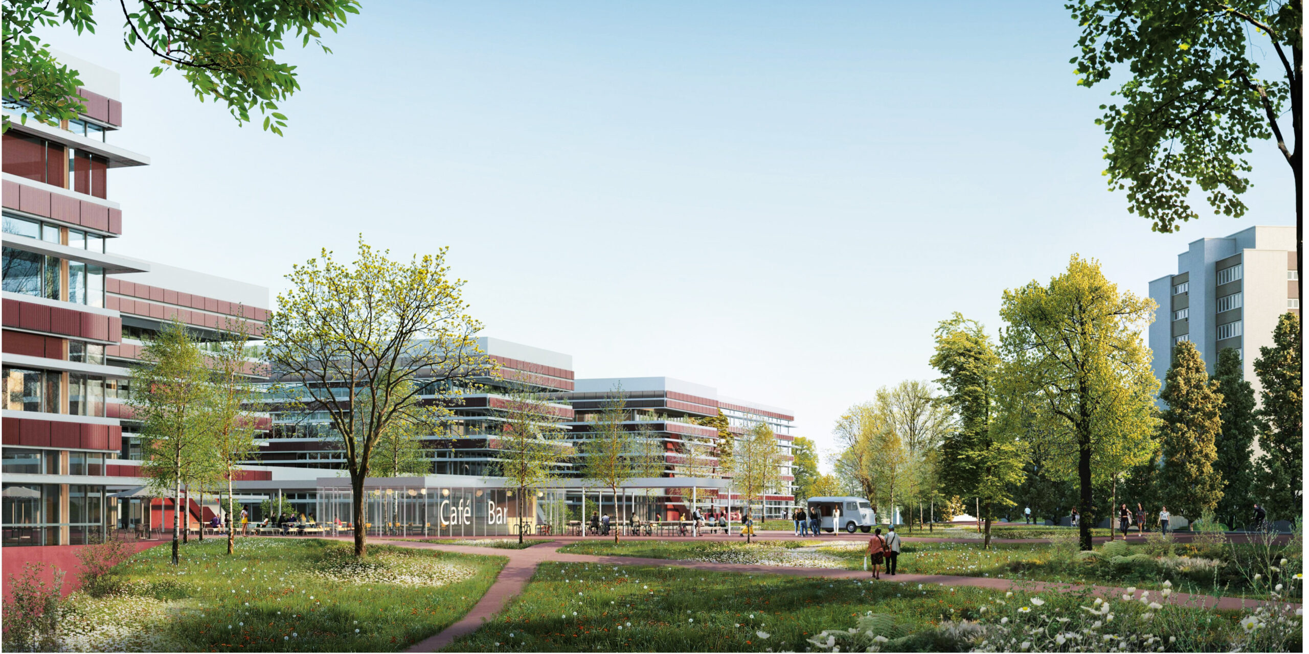 Die Unterrichts- und Büroräume der beiden Neubauten entstehen rund um zentrale Atriumfiguren. Die Räumlichkeiten werden flexibel und an sich verändernde Bedürfnisse anpassbar gebaut. Die Atrien vernetzen die Institute der jeweiligen Schulen untereinander sowie mit den übergeordnet genutzten Sockelgeschossen. Diese sehen gemeinsame Nutzungen für den Gesamtcampus wie Bibliothek, Mensa, Audimax oder Campusaula vor.