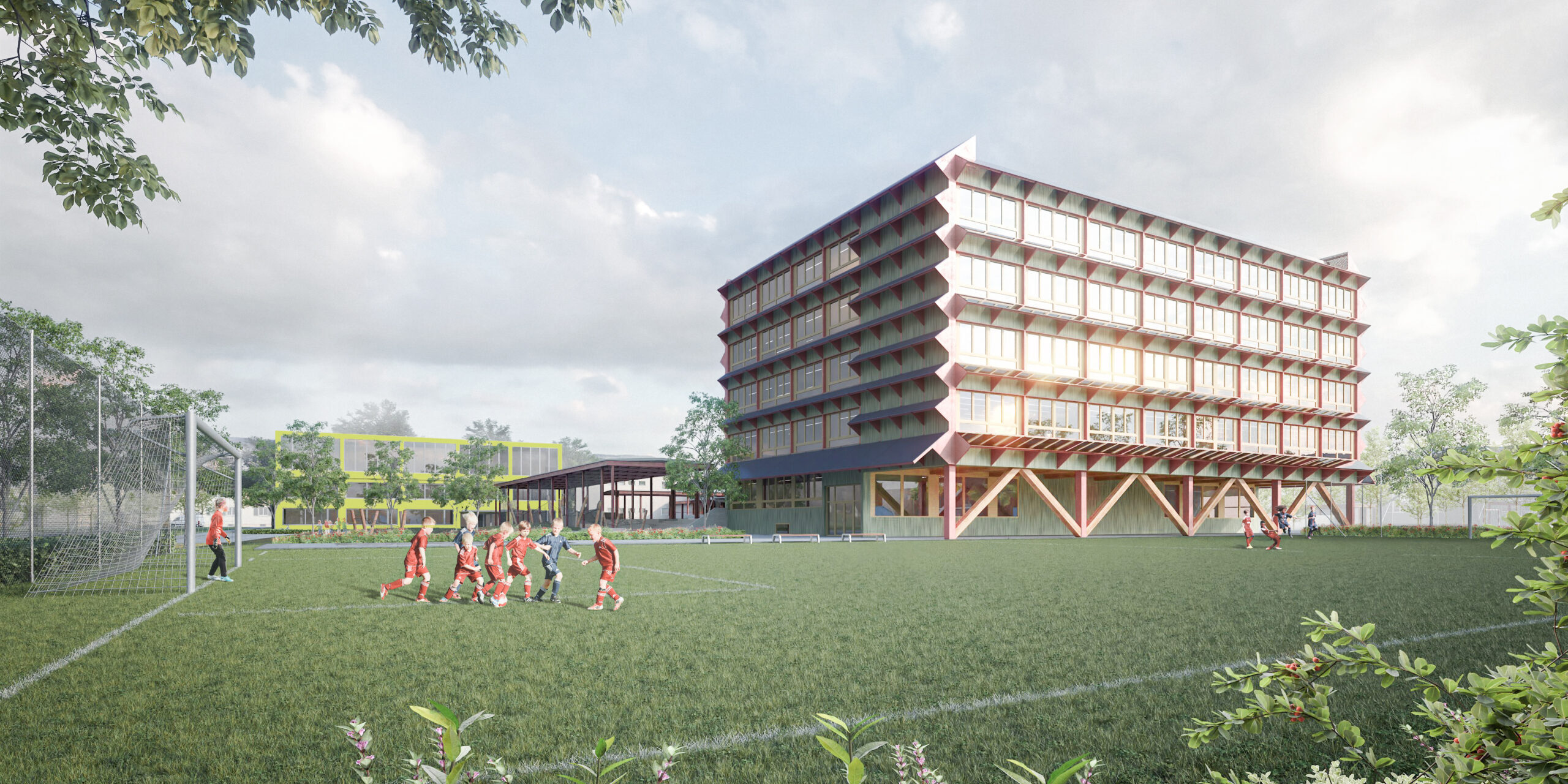 Il progetto vincente “LYNX” di Parameter Architekten e Rosenmayr Landschaftsarchitektur per il vicino complesso scolastico di Luchswiesen si confronta con una crescente necessità di spazio scolastico. La città sta pianificando un ampliamento significativo entro il 2028, che fornirà nuovi spazi per 750 bambini. Ispirato all’architettura originale di Max Kollbrunner, l’ampliamento combina elementi vecchi e nuovi e integra un triplo palazzetto dello sport, oltre ad aule moderne e strutture per l’infanzia.