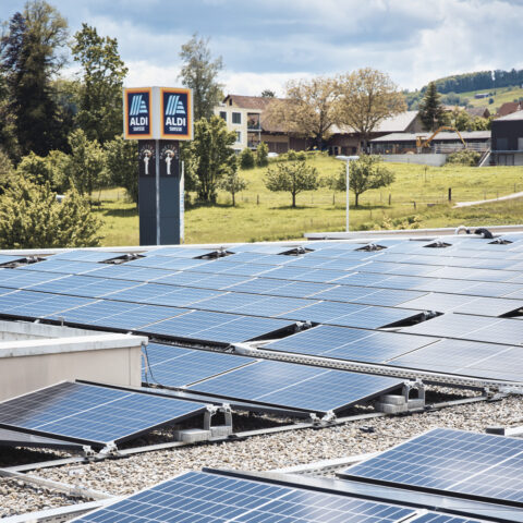 Beim Solarprojekt von ALDI SUISSE beispielsweise spielen Nachhaltigkeit und Wirtschaftlichkeit eine zentrale Rolle. In etwas mehr als nur einem Jahr hat ewz 68 Filialdächer zwischen Romanshorn und Genf mit Photovoltaikanlagen ausgerüstet. Den Grossteil des Solarstroms verbraucht ALDI SUISSE selbst für den eigenen Filialbetrieb. Die realisierte Lösung ermöglicht dank der grossen PV-Anlagen einen hohen Solarertrag bei einem durchschnittlichen Eigenverbrauch von 55 bis 60 Prozent.