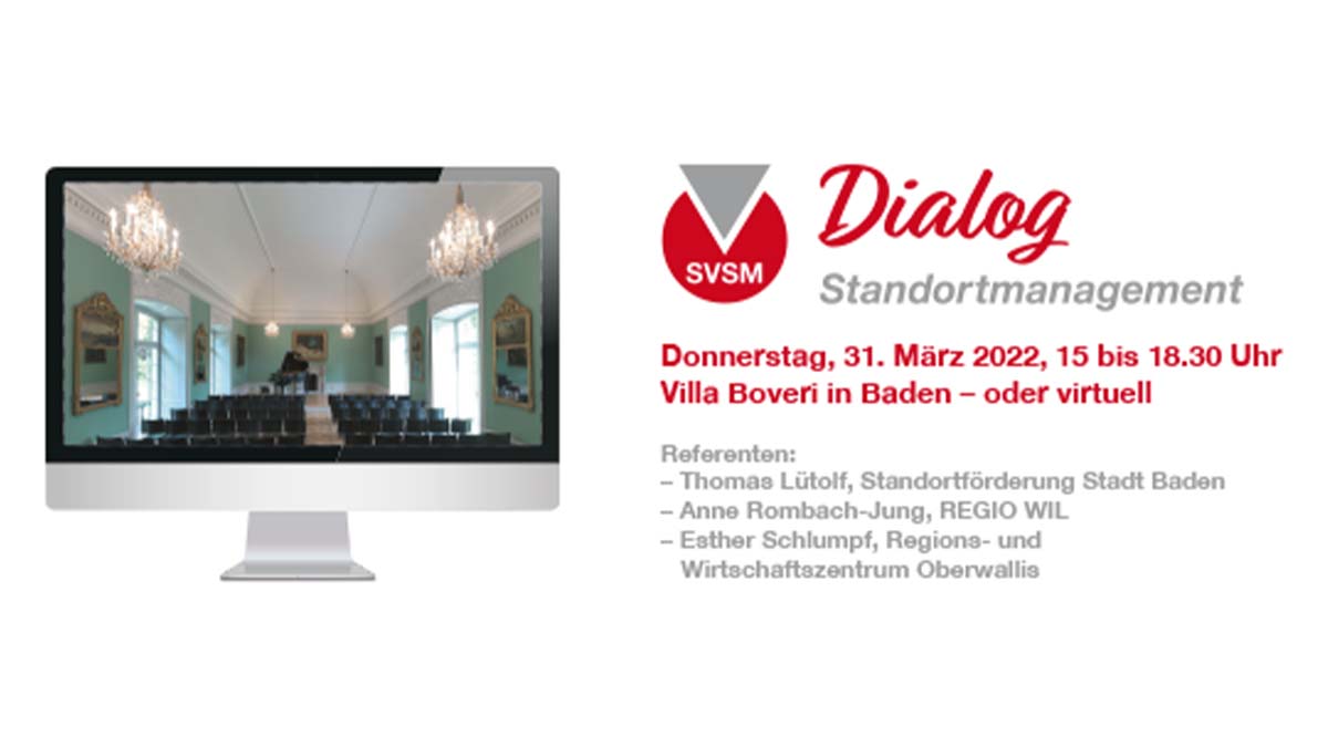 Mit der Veranstaltungsreihe «SVSM Dialog» vermittelt die Schweizerische Vereinigung für Standortmanagement SVSM Fachwissen und vernetzt Standortmanager*innen, Wirtschaftsförderer*innen, Immobilien-Fachleute, Raumplaner*innen und weitere Interessierte. An der kommenden Frühlingsveranstaltung, die am 31. März 2022 von 15 bis 18.30 Uhr stattfindet, bieten praxisbezogene Referate aus dem Oberwallis, der Stadt Baden und der Region Wil fachlich wertvolle Inputs für die tägliche Arbeit. Drei spannende Referent*innen zeigen am «SVSM Dialog Standortmanagement» anhand von Fallbeispielen Lösungsansätze und Strategien für die Praxis auf und diskutieren über aktuelle Herausforderungen: Thomas Lütolf, Leiter Standortförderung Stadt Baden, stellt die regionalwirtschaftliche Vision Stadtquartier Baden Nord vor. Anne Rombach-Jung, Geschäftsführerin REGIO WIL, spricht über die Zukunft von WILWEST und Esther Schlumpf, Projektleiterin beim Regions- und Wirtschaftszentrum Oberwallis, befasst sich mit der Frage, ob Governance ein Erfolgsfaktor für die Regionalentwicklung sein kann.