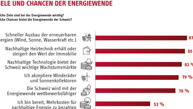 87 Prozent der Schweizerinnen und Schweizer wollen erneuerbare Energien wie Wind, Sonne und Wasserkraft weiter ausbauen. Dafür ist die Mehrheit (52 Prozent) auch bereit, tiefer in die Tasche zu greifen. Das sind Ergebnisse aus dem Energie-Trendmonitor 2023. Dazu wurden im Auftrag von STIEBEL