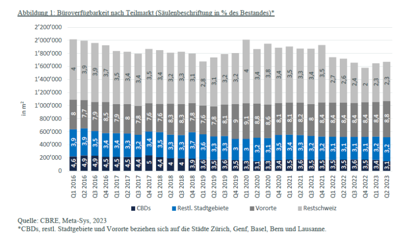 CBRE Switzerland veröffentlicht aktuelle Zahlen vom Q2 2023 zur Büroverfügbarkeit und den Büroflächenumsätzen in der Schweiz.